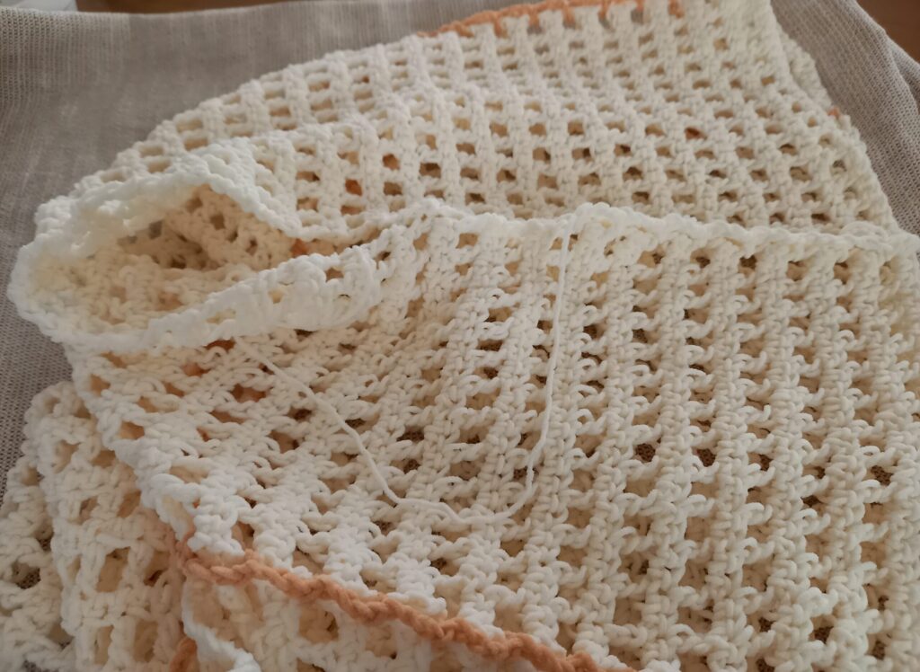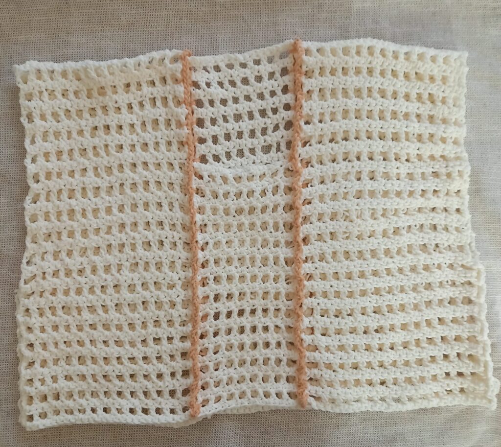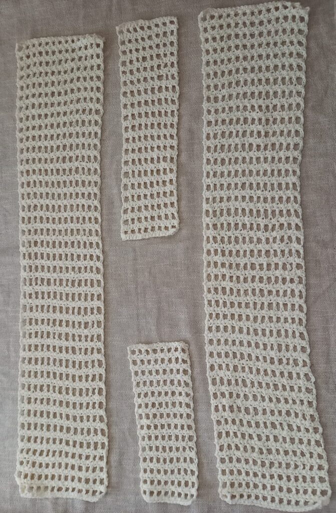 作り方はとても簡単で、まっすぐ編んだ長方形を4枚つなぎ合わせるだけ。