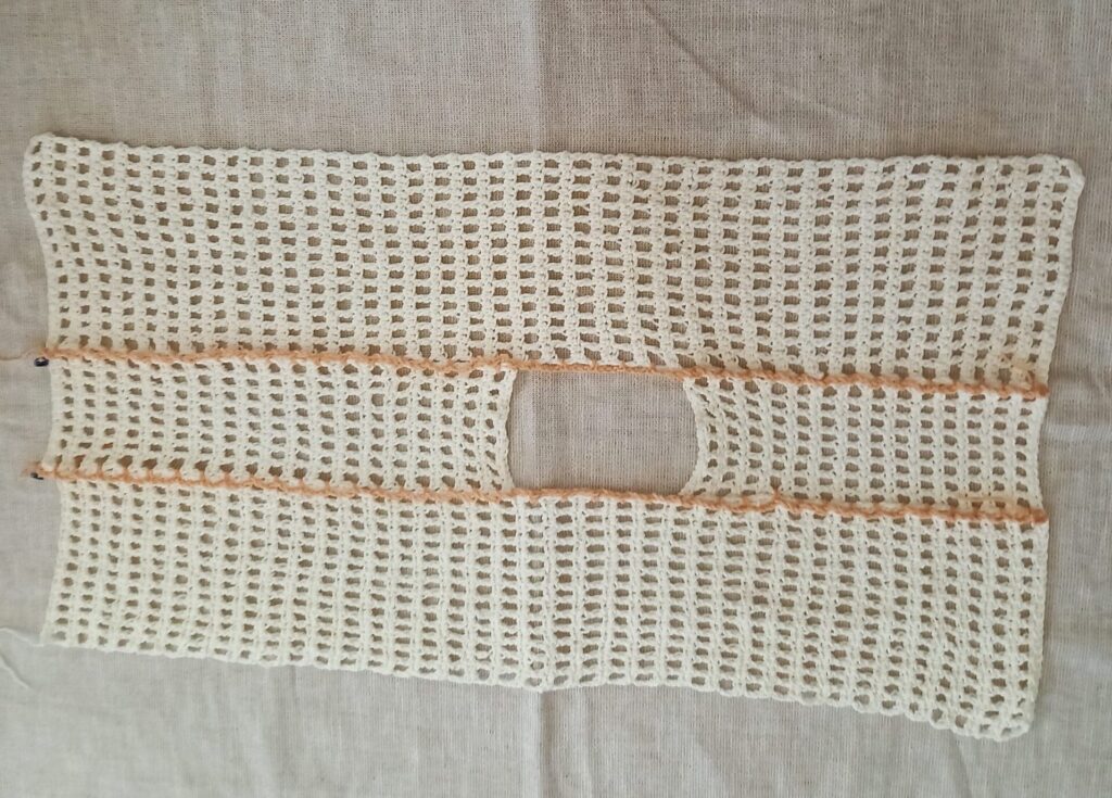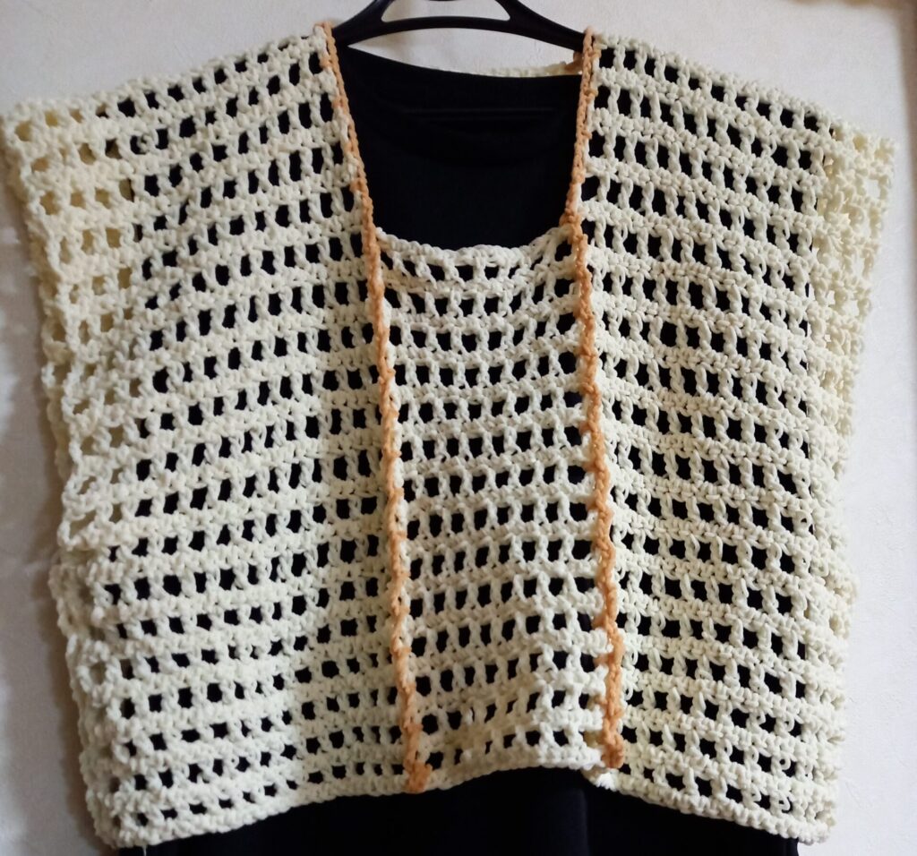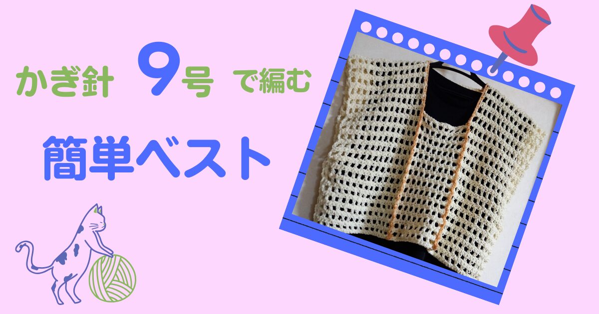 編みぐるみ用に購入したダイソーのドールヤーンを使って、今回はベストを編んでみました。