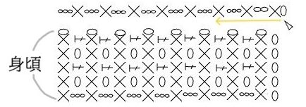 同じ毛糸を使った「ネコ顔キャミソール」と同じ編み方になります。