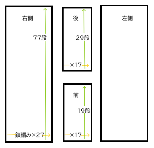 ■左右、前後、下図を参照に4枚編みます