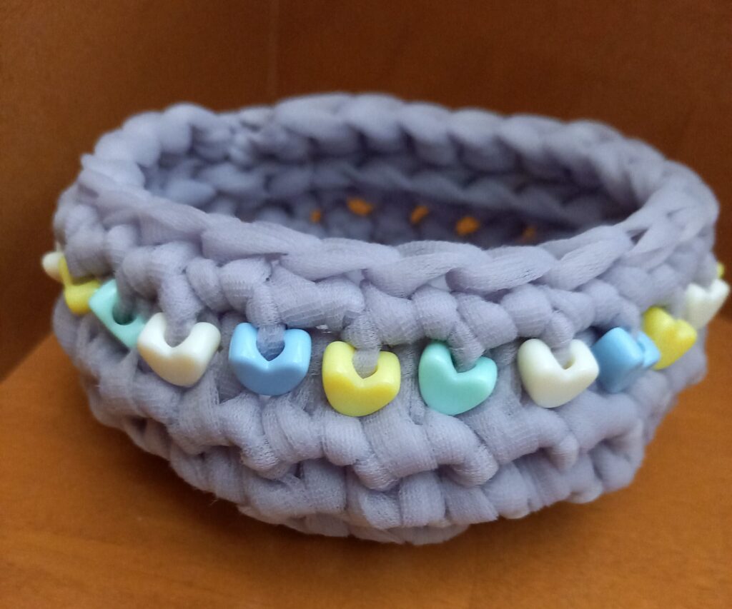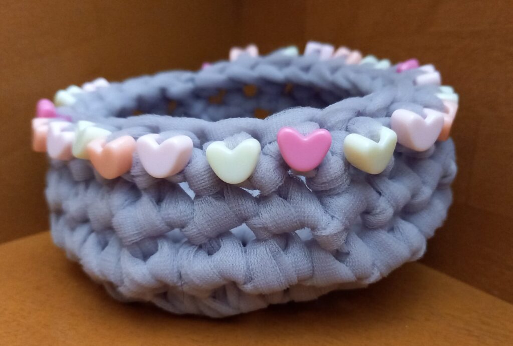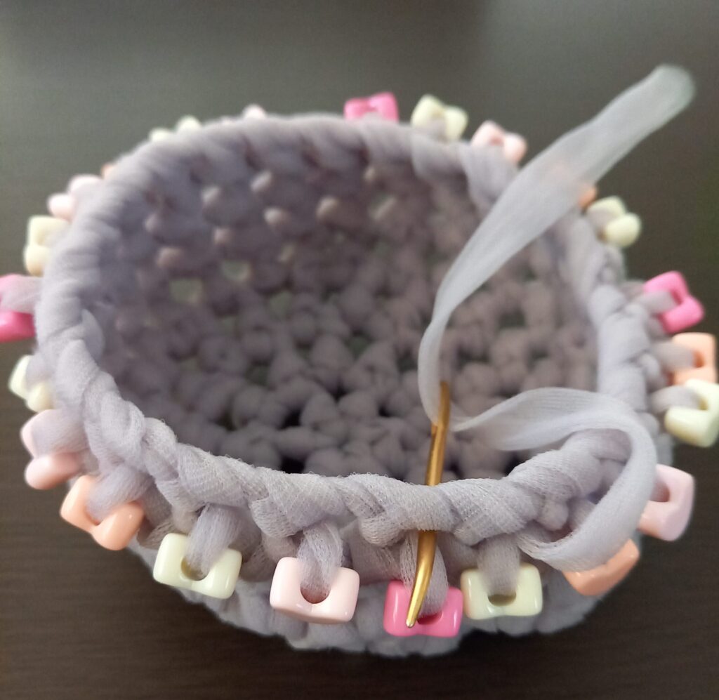 今回私が編んだ小物入れは直径10cm×高さ5cmになります。