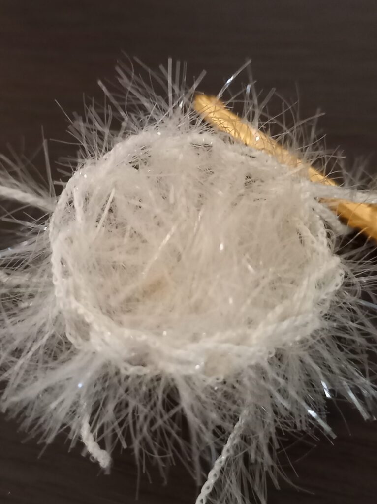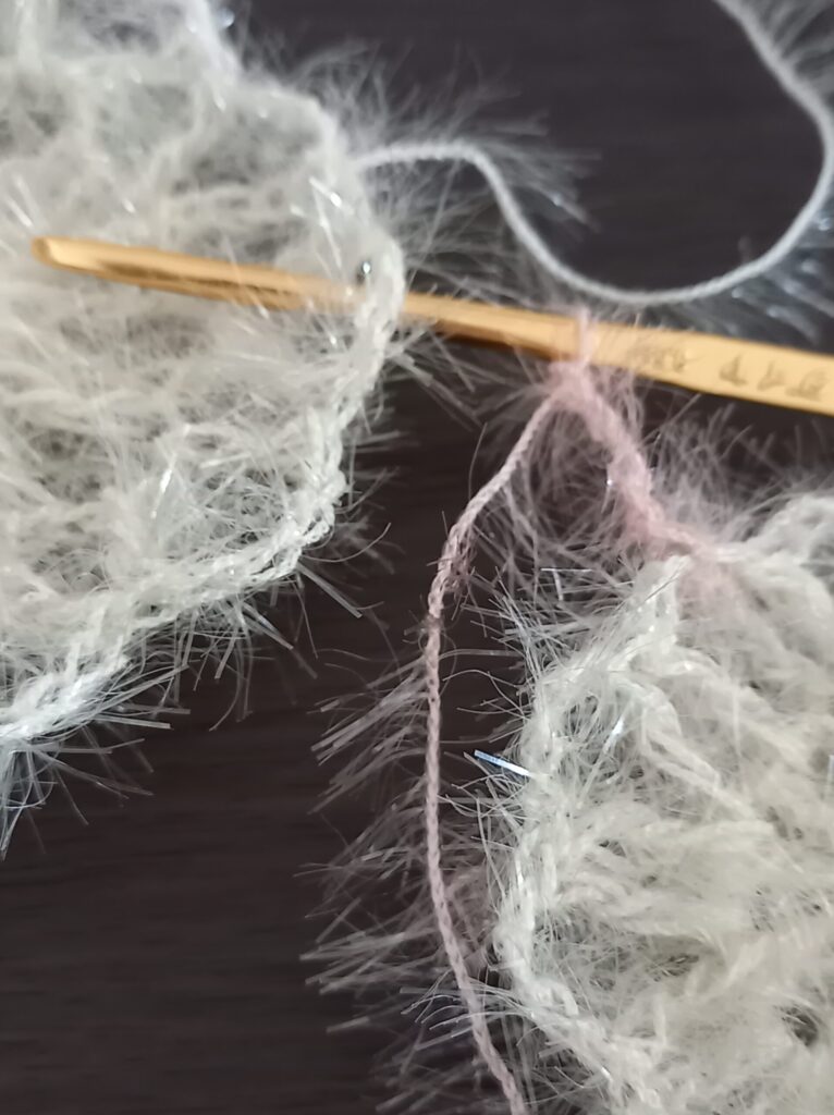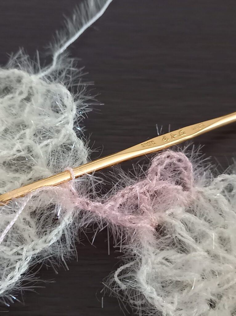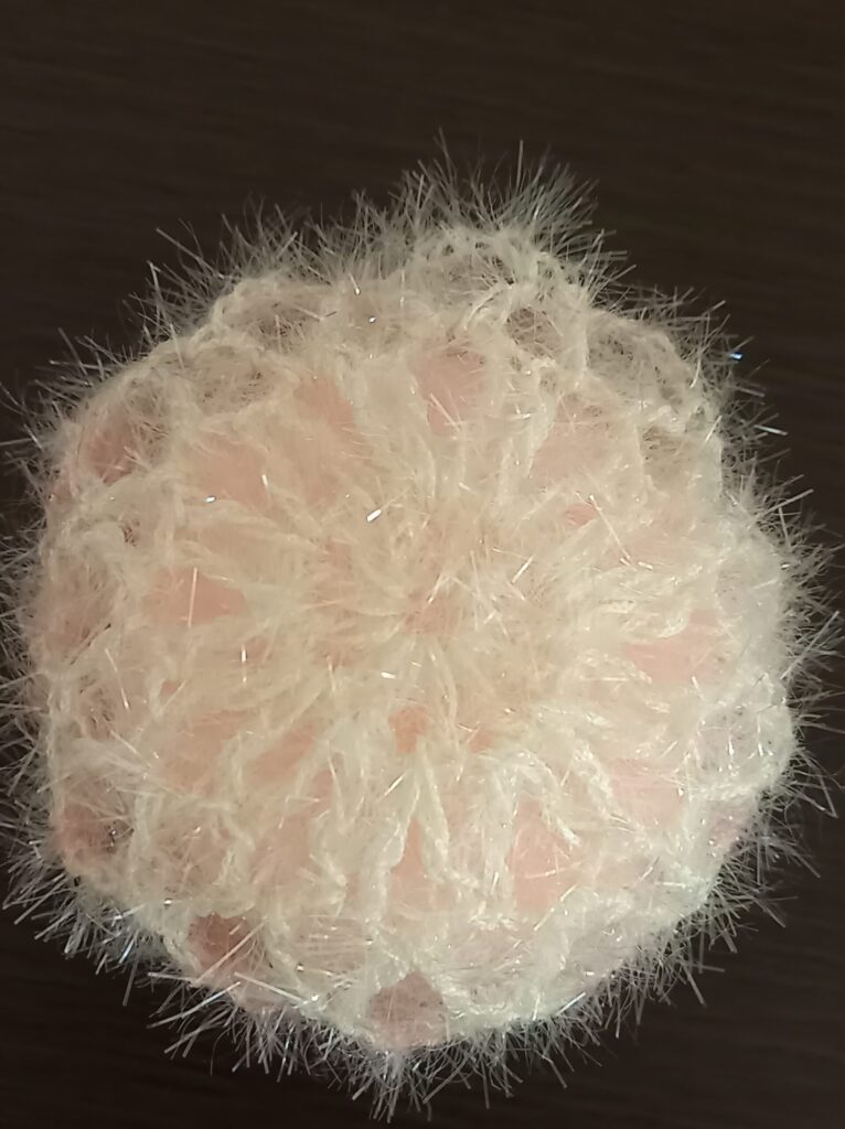 - 模様3個はつなげずに編み、石鹼を入れる