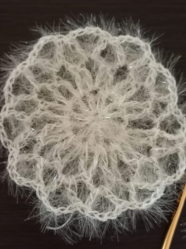 - 黄印、緑印の模様を12個編み1枚目を完成させる