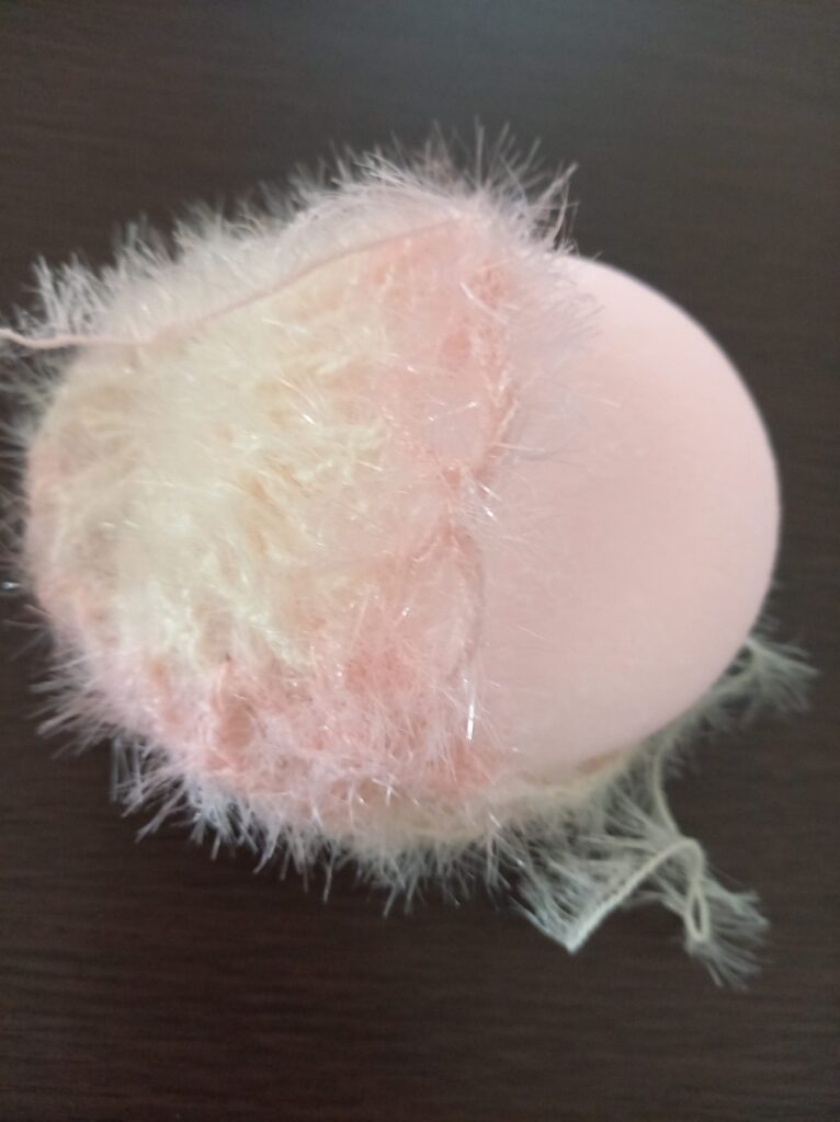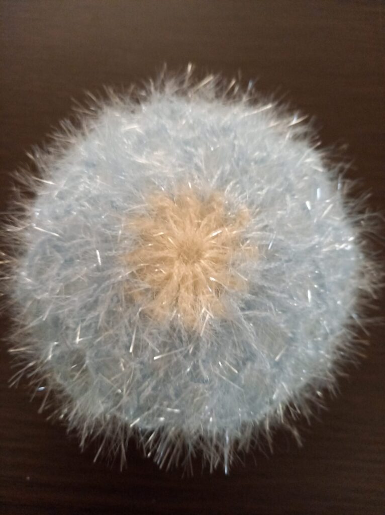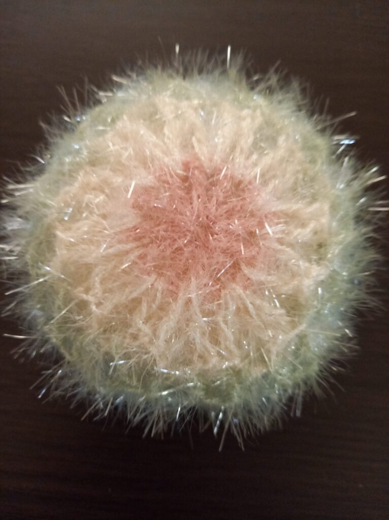 手のひらにちょこんとのるサイズがとても使いやすく、ころんとした手まりのような可愛らしさもあって、つい「もうひとつ編もうかな」と思ってしまいます。