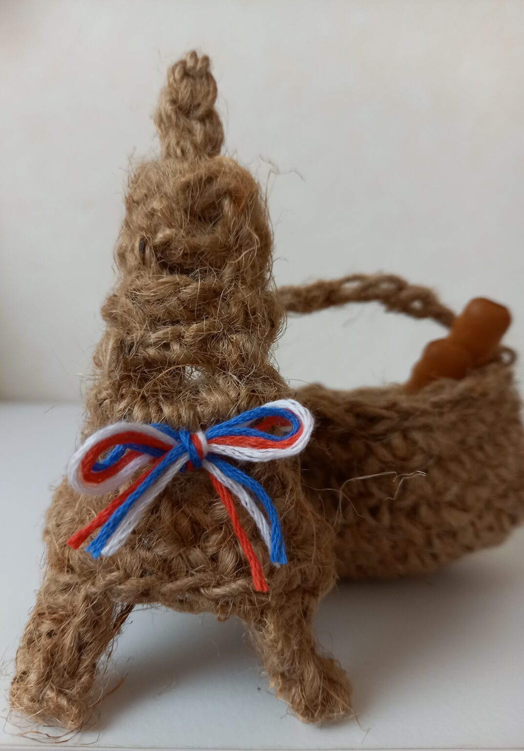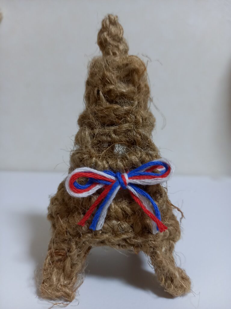 散々、手芸用じゃない麻ひもに文句たらたらだったけど、かぎ針と刺繍糸でなんとか形に!