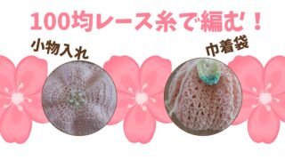 編み物 100均リサイクルレース糸をかぎ針で編む「小っちゃい小物入れと巾着袋」
