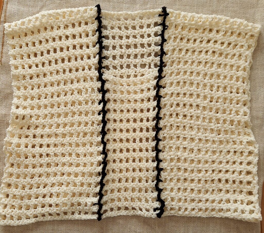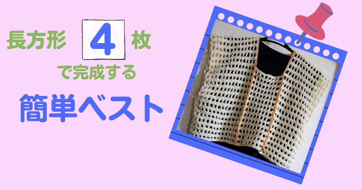 作り方はとても簡単で、まっすぐ編んだ長方形を4枚つなげるだけ。さらに9号のかぎ針を使うので、サクサク編めます。編み物初心者でも挑戦しやすい、シンプルなベストです。
