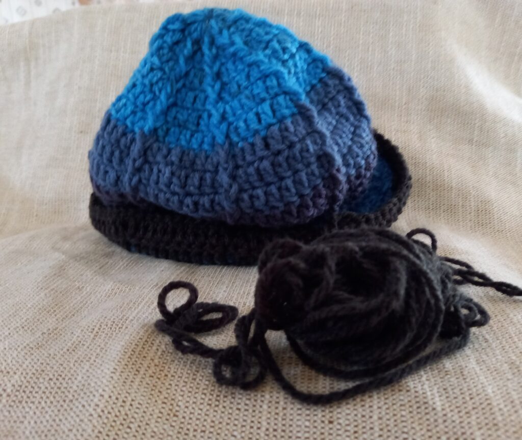 *ブルー系のきれいなグラデーションですが、初めは「外側の色がちょっと暗いかも…」と思ったけれど、編みやすく編み進めているうちに夜空のような深みのある色が、ハット全体を引き締めてくれます。