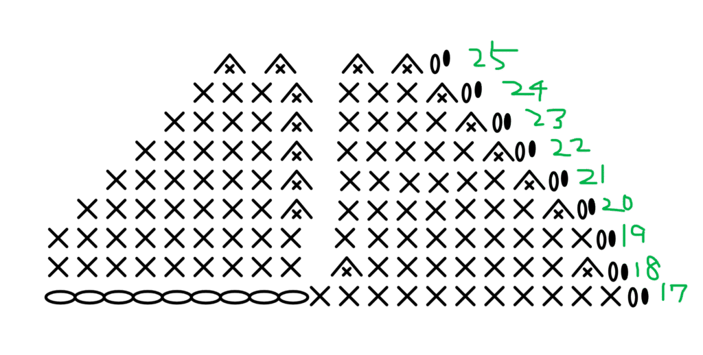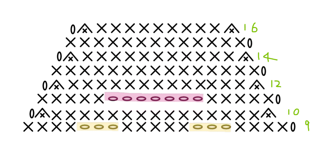 - 偶数段の両端で減らし目1ずつ