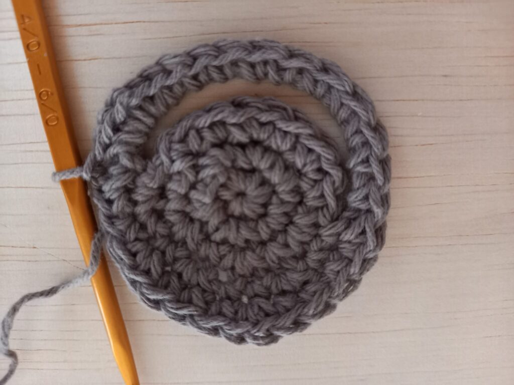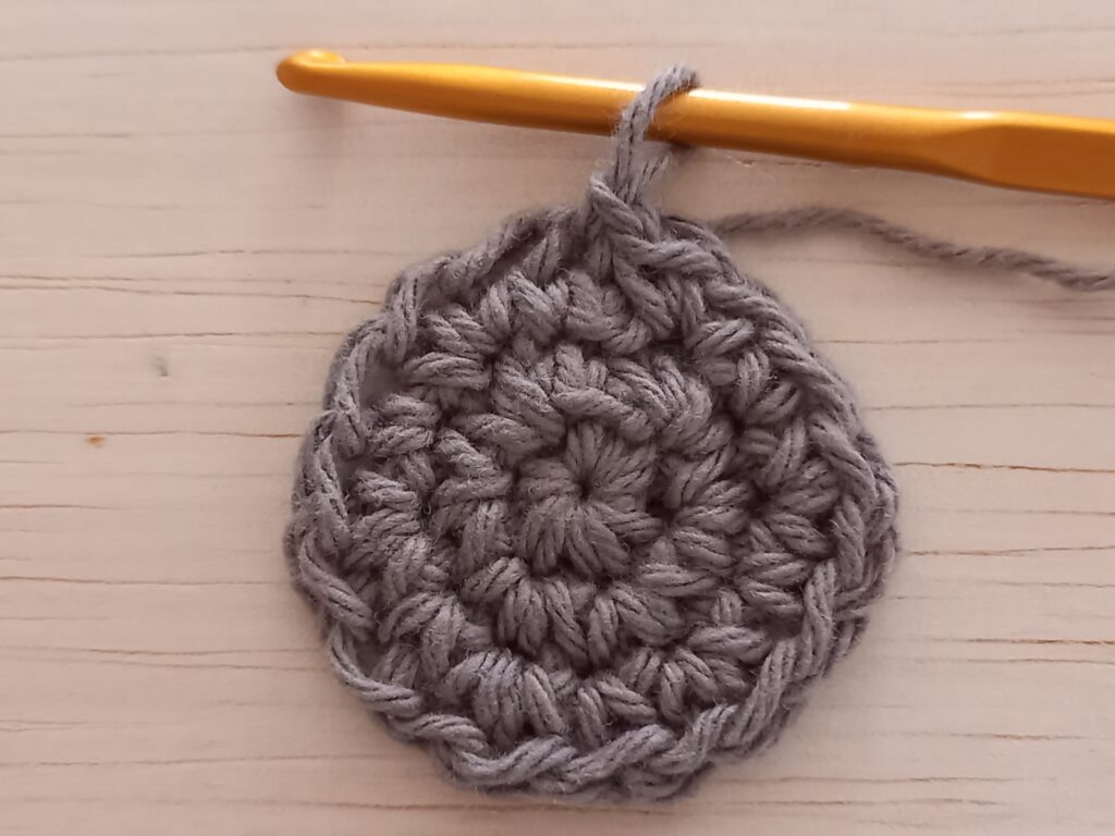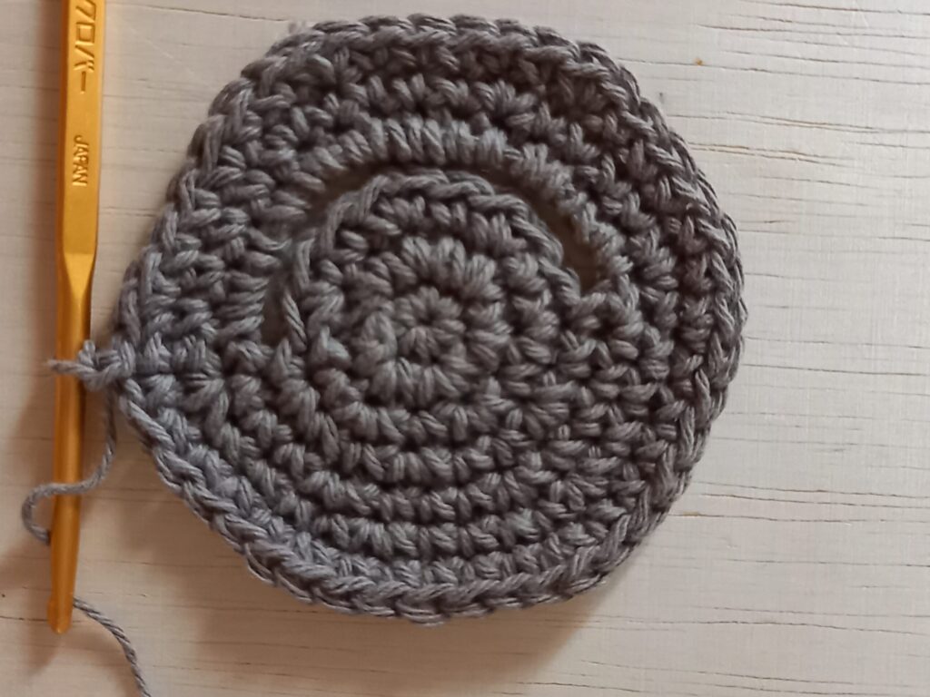- 細編みで3段の円を編みます