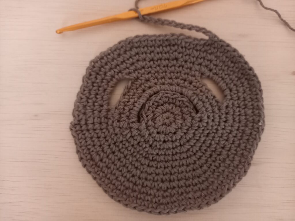 *右手の出し口 - 細編み増し目1