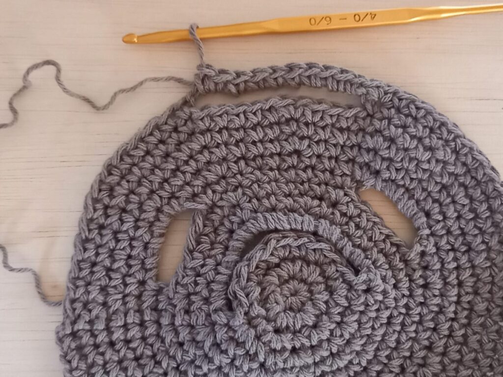 鎖編みを足して輪にします