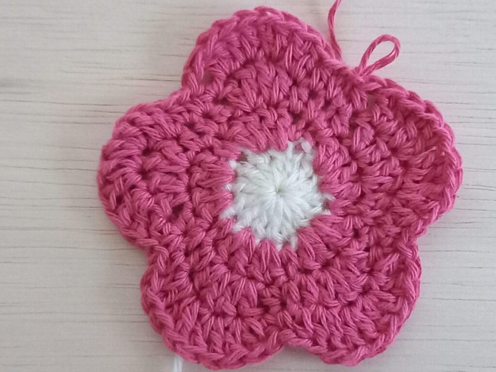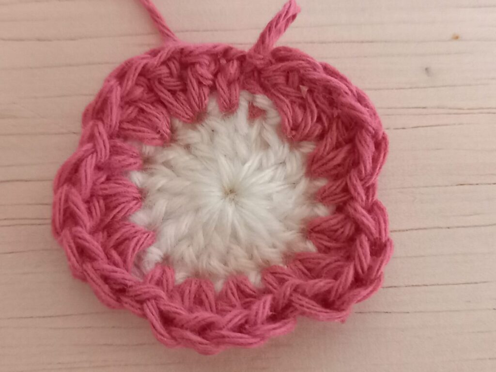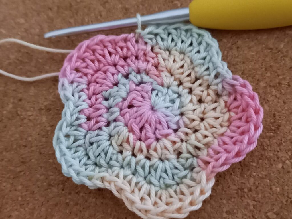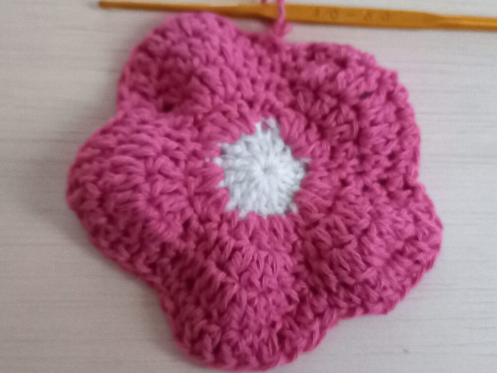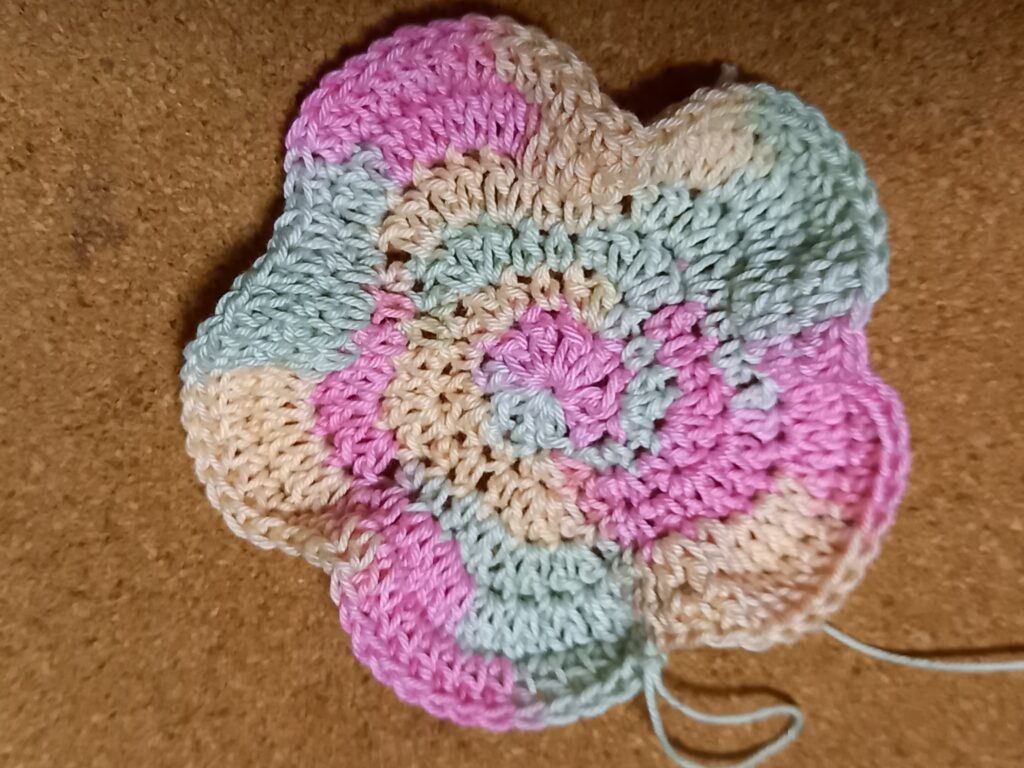 もう1つは直径8㎝の満開の桜をイメージした、少し高さがあるモチーフを編みました。