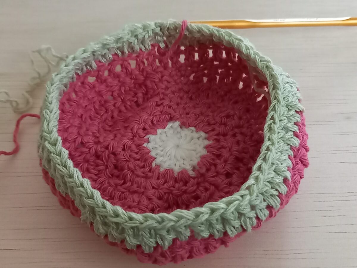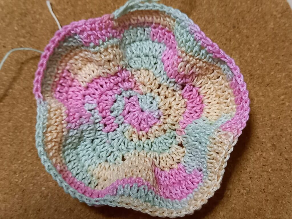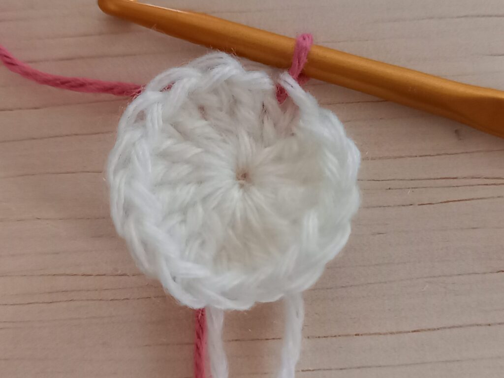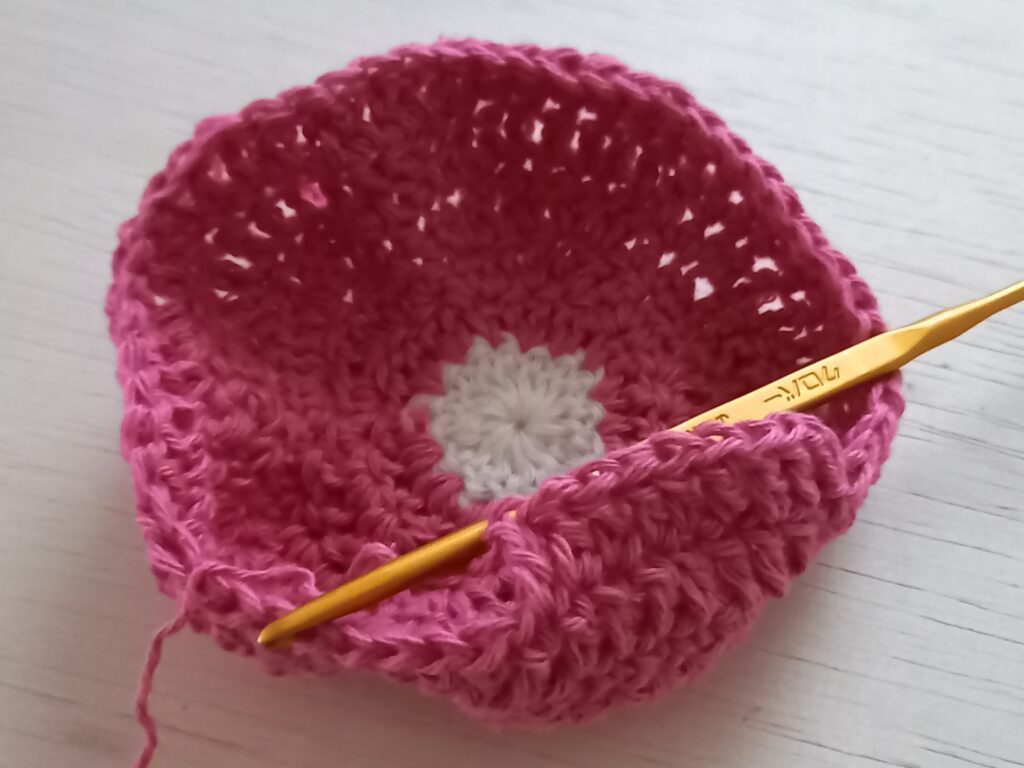 もう1つは直径8㎝の満開の桜をイメージした、少し高さがあるモチーフを編みました。