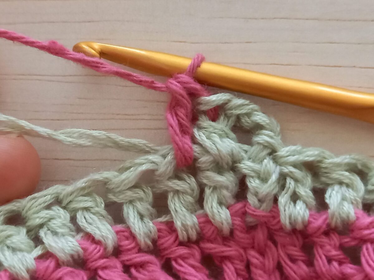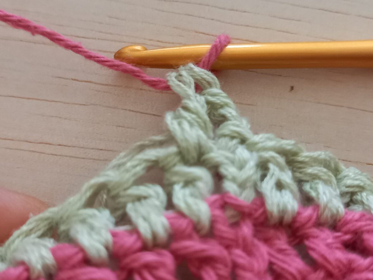 - 同じ目に(中長編み1、長編み1、中長編み1)