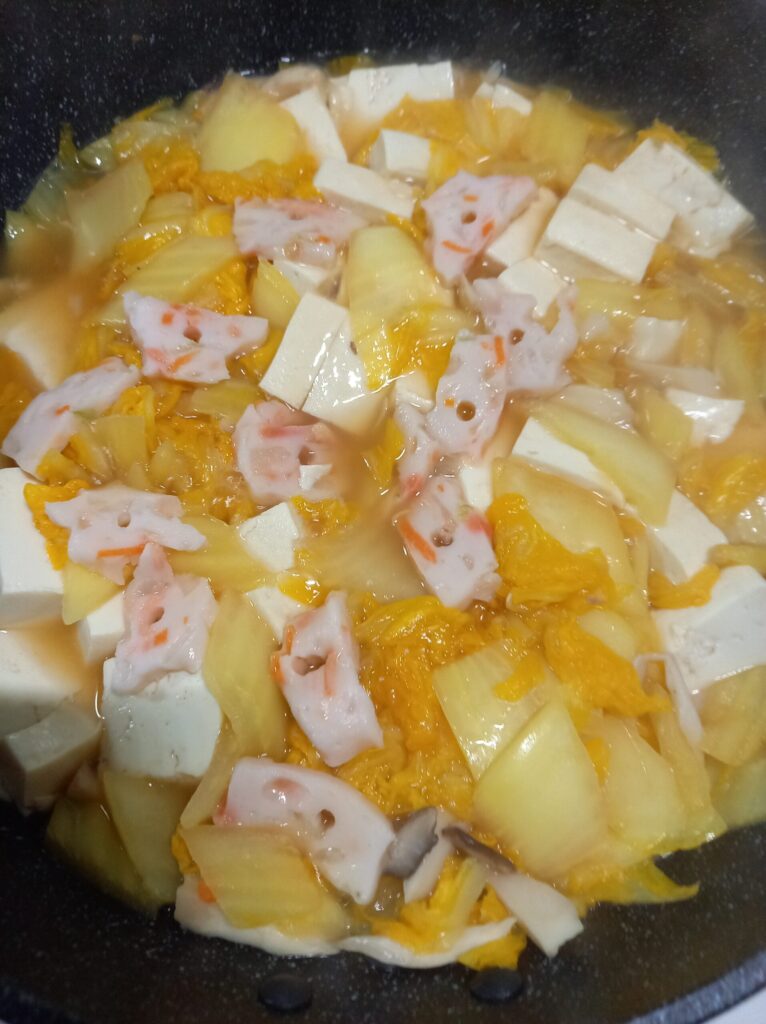 - さつま串、豆腐、野菜を入れ煮込んで完成。
