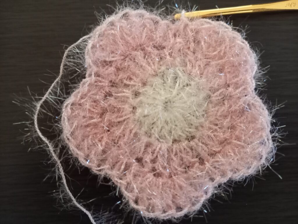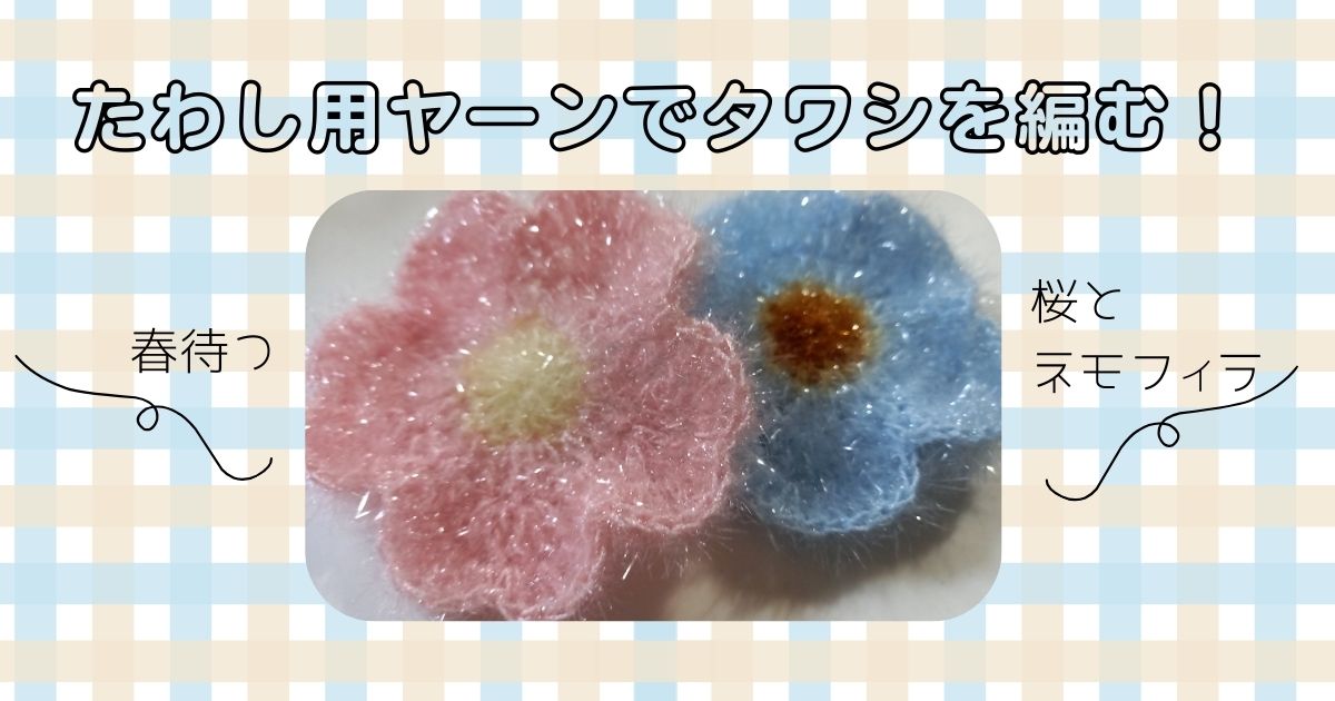 たわし用ヤーンの魅力って、どうしてこうも編み手を誘惑するのでしょう。そんな“抗えなかった結果”を、お披露目します。春を迎える気持ちで選んだ花のモチーフです。
