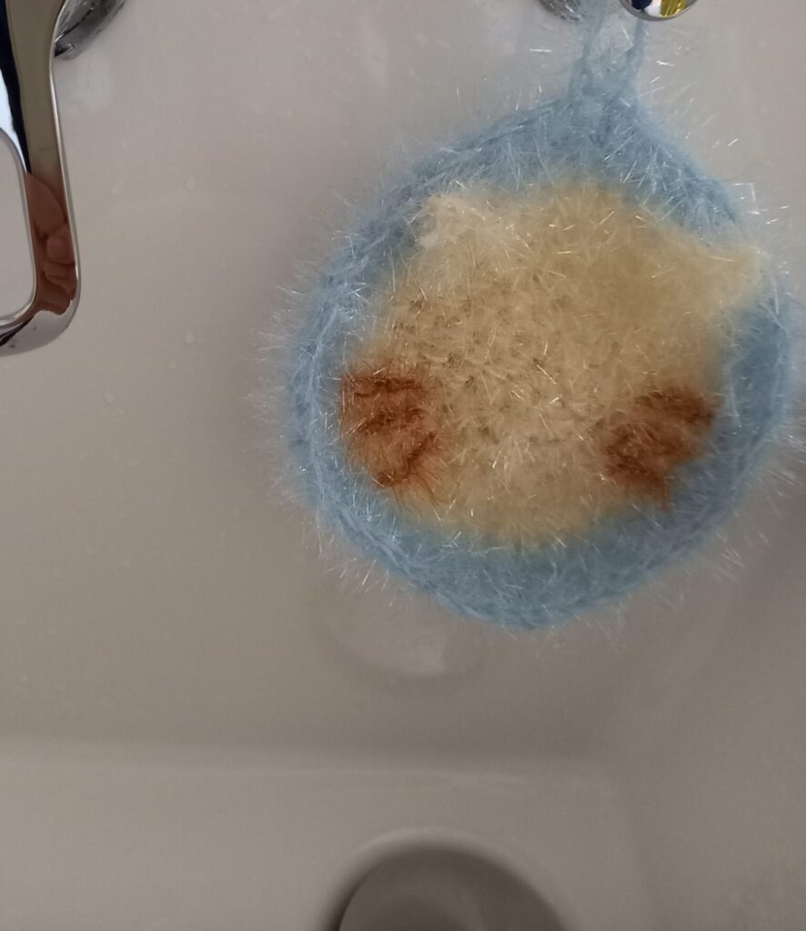 自分で編んだ【たわし】だったら「後回し気味の掃除も楽しく率先してやれそう」とウキウキ気分で早速編んでみました。